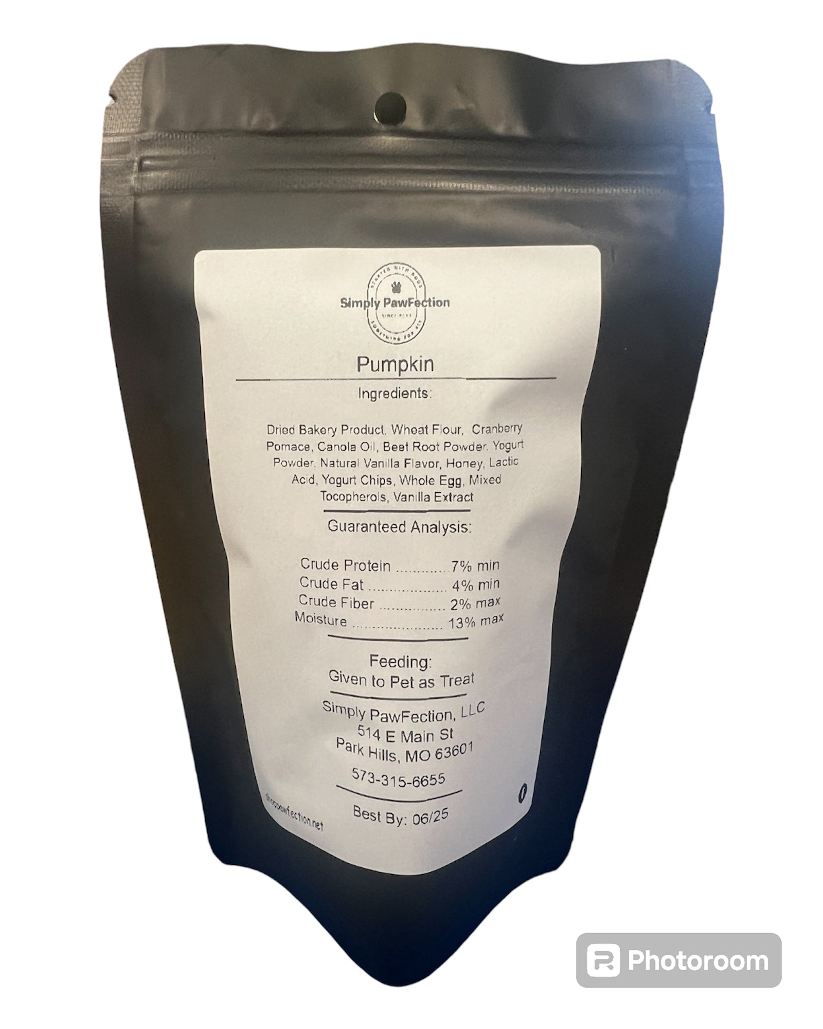 Ingredients: Dried Bakery Product, Wheat Flour, Pumpkin Puree, Canola Oil, Cinnamon, Whole Egg